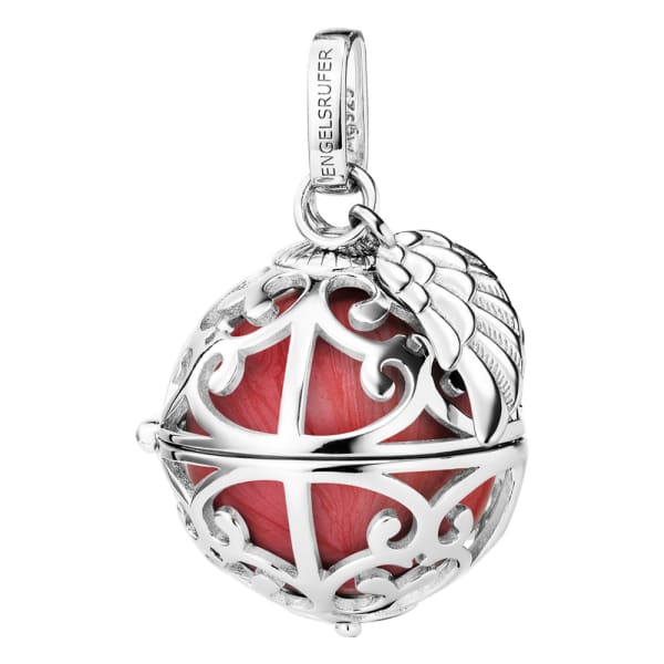 ENGELSRUFER SILVER RED PEARL SMALL ANGEL WING SOUNDBALL PENDANT