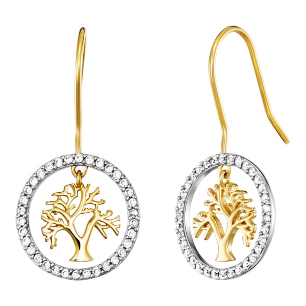 ENGELSRUFER SILVER & GOLD TREE OF LIFE DANGLE CZ HALO CIRCLE EARRINGS